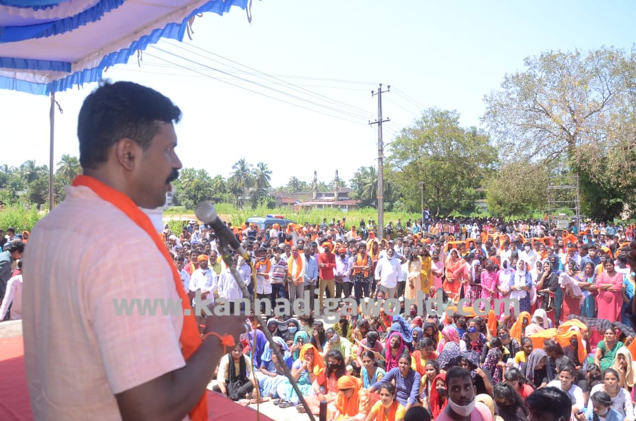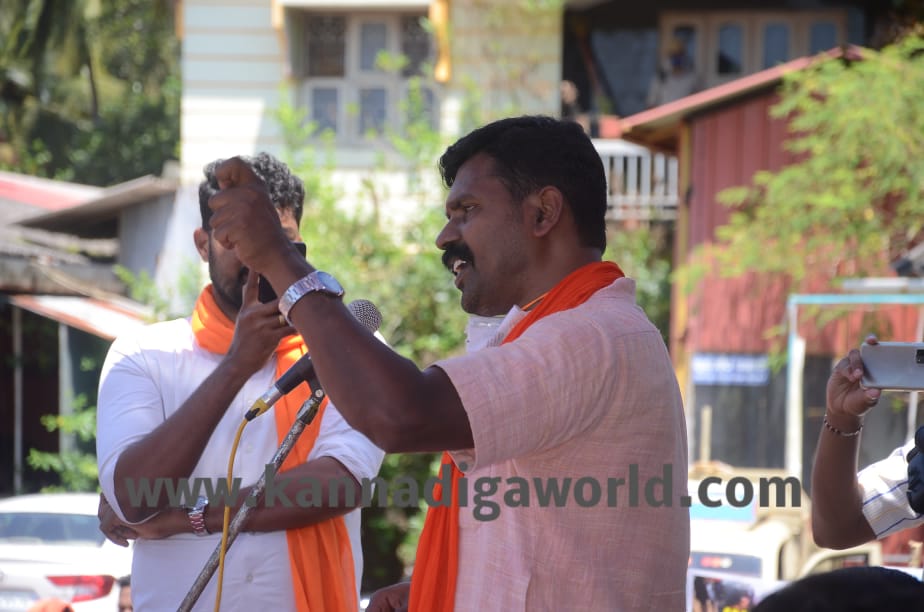 ಹಿಂದೂ ಜಾಗರಣ ವೇದಿಕೆ ನೇತೃತ್ವದಲ್ಲಿ ಗೋ ಹತ್ಯೆ ವಿರೋಧಿಸಿ ಮತ್ತು ಗೋ ಹಂತಕರನ್ನು ಗಡಿಪಾರು ಮಾಡಲು ಒತ್ತಾಯಿಸಿ ಗಂಗೊಳ್ಳಿಯಲ್ಲಿ ಹಿಂದು ಸಂಘಟನೆಗಳಿಂದ ಶುಕ್ರವಾರ ಬೃಹತ್ ಪ್ರತಿಭಟನಾ ಜಾಥಾ ನಡೆದಿದ್ದು ಬಳಿಕ ನಡೆದ ಪ್ರತಿಭಟನಾ ಸಭೆಯಲ್ಲಿ ಅವರು ಮಾತನಾಡಿದರು.
