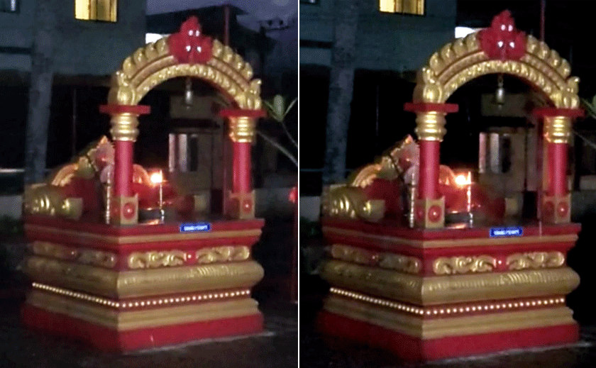 ಹೌದು , ಅಕ್ಟೋಬರ್ -16ರಂದು ಸೂಟರ್ ಪೇಟೆ ಶ್ರೀ ಕೋರ್ದಬ್ಬು ದೈವಸ್ಥಾನದಲ್ಲಿ ರಾತ್ರಿ ಶ್ರೀ ಬಬ್ಬು ಸ್ವಾಮಿಗೆ ಹೂವಿನ ಅಲಂಕಾರ ಪೂಜೆ ನಡೆಯುವ ಸಮಯದಲ್ಲಿ ಗಾಳಿ ಸಹಿತ ಜೋರಾಗಿ ಬಂದ ಮಳೆಗೆ ಶ್ರೀ ಕ್ಷೇತ್ರದ ರಾಹು ಗುಳಿಗ ದೈವದ ಪೀಠದಲ್ಲಿದ್ದ ನಂದಾದೀಪ ಉರಿಯುತ್ತಾ ದೀಪ ನಂದದೇ ಇರುವುದು ಆಶ್ಚರ್ಯ ಮೂಡಿಸಿತು. ಹೂವಿನ ಅಲಂಕಾರ ಪೂಜೆಗೆ ಬಂದ ಭಕ್ತರೊಬ್ಬರು ಈ ದೃಶ್ಯವನ್ನು ಚಿತ್ರೀಕರಿಸಿ ಸಾಮಾಜಿಕ ಜಾಲತಾಣದಲ್ಲಿ ಹಾಕಿರುವುದು ಇದೀಗ ಭಾರೀ ವೈರಲ್ ಆಗಿದೆ.