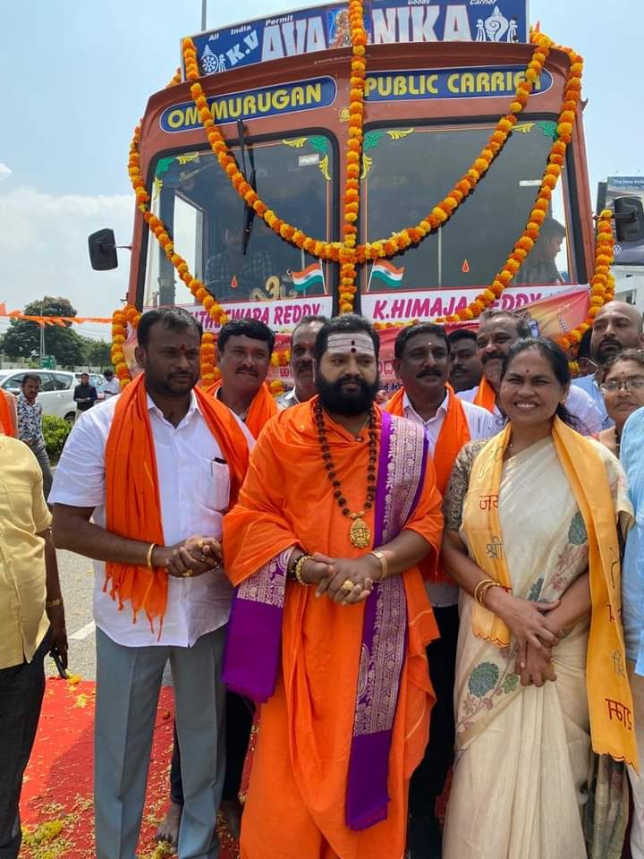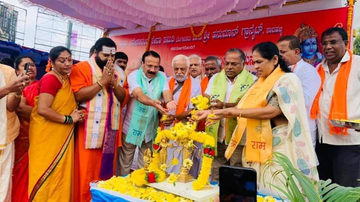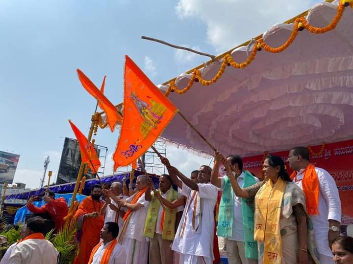 ಕೆಂಪೇಗೌಡ ಅಂತಾರಾಷ್ಟ್ರೀಯ ವಿಮಾನ ನಿಲ್ದಾಣ ರಸ್ತೆಯ ಸಾದಹಳ್ಳಿ ಗೇಟ್ ಬಳಿ ಶಿಲೆಗಳ ಪೂಜೆ ಮತ್ತು ಅವುಗಳನ್ನು ಹೊತ್ತ ಲಾರಿಗಳ ಬೀಳ್ಕೊಡುಗೆ ಕಾರ್ಯಕ್ರಮ ನಡೆಯಿತು. ಅಯೋಧ್ಯೆ ಶ್ರೀರಾಮ ಜನ್ಮ ಭೂಮಿ ತೀರ್ಥ ಕ್ಷೇತ್ರ ಟ್ರಸ್ಟ್ನ ವಿಶ್ವಸ್ಥ, ಪೇಜಾವರ ಮಠಾಧೀಶ ವಿಶ್ವಪ್ರಸನ್ನತೀರ್ಥ ಸ್ವಾಮೀಜಿ ಸಾನ್ನಿಧ್ಯ ವಹಿಸಿ, ಶಿಲಾಪೂಜೆ ನೆರವೇರಿಸಿ ಲಾರಿಗಳಿಗೆ ಹಸಿರು ನಿಶಾನೆ ತೋರಿದರು.