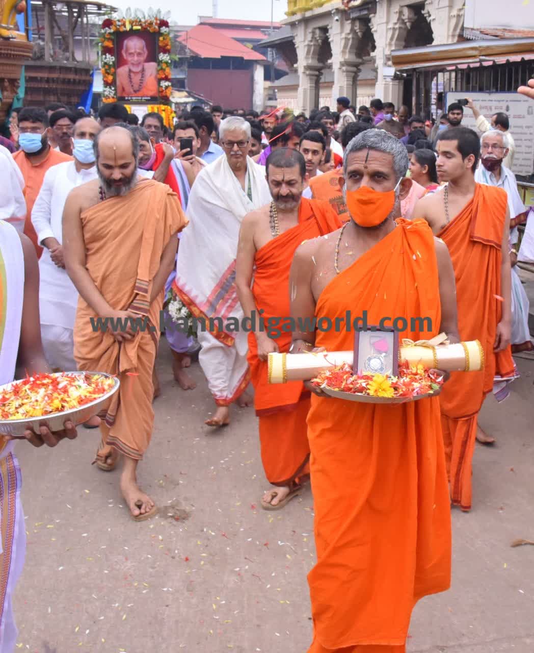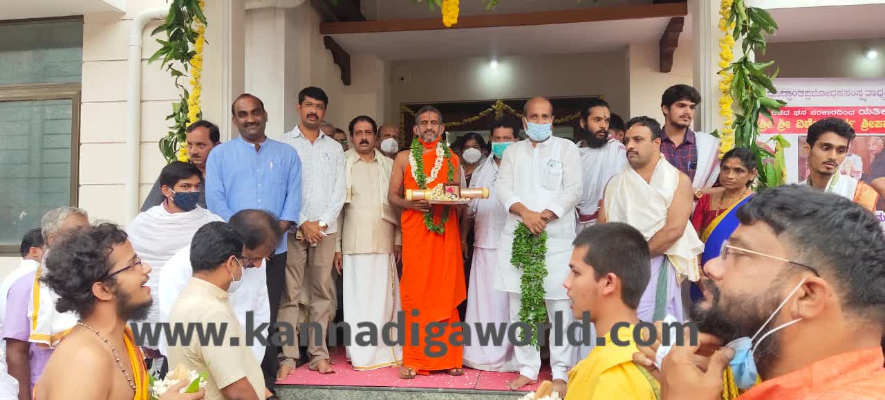 ಉಡುಪಿ: ಭಾರತ ಸರ್ಕಾರದಿಂದ ಕೀರ್ತಿ ಶೇಷ ಶ್ರೀ ವಿಶ್ವೇಶತೀರ್ಥ ಶ್ರೀಪಾದರಿಗೆ ಕೊಡಮಾಡಿದ ಮರಣೋತ್ತರ ಪದ್ಮವಿಭೂಷಣ ಪ್ರಶಸ್ತಿಯನ್ನು ಗುರುವಾರ ಭಕ್ತಿ ಗೌರವಪೂರ್ವಕವಾಗಿ ಉಡುಪಿಯಲ್ಲಿ ಸ್ವಾಗತಿಸಲಾಯಿತು.
