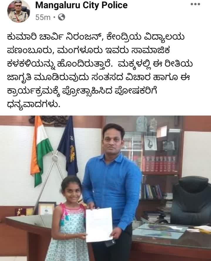 ಈ ಬಗ್ಗೆ ಜಾಲತಾಣದಲ್ಲಿ ಪೋಸ್ಟ್ ಮಾಡಿದ ಕಮಿಷನರ್ ಶಶಿಕುಮಾರ್ ಬಾಲಕಿಯ ಕಾಳಜಿ ಹಾಗೂ ಪೋಷಕರ ಪ್ರೋತ್ಸಾಹದ ಬಗ್ಗೆ ಶ್ಲಾಘಿಸಿದ್ದಾರೆ.