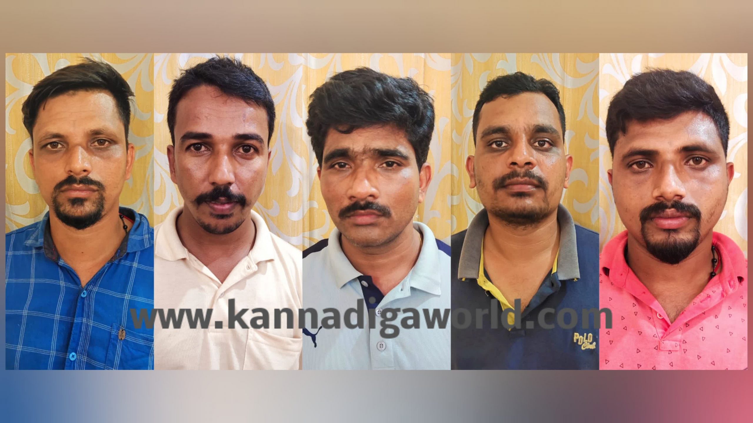 ಮಡಿಕೇರಿಯ ಮಾರ್ದಾಳ ನಿವಾಸಿ ಕಿರಣ್(32), ಪುತ್ತೂರಿನ ಮಹಮ್ಮದ್ ಮುಸ್ತಾಫ್(34), ಬಂಟ್ವಾಳ ತಾಲೂಕಿನ ಪುಂಜಾಲಕಟ್ಟೆಯವಾರಾದ ಅಶೋಕ್(30), ರೂಪೇಶ್ ಪೂಜಾರಿ(27) ಹಾಗೂ ಶಿರೂರು ಅಳ್ವೆಗದ್ದೆಯ ಮೋಹನ ಪೂಜಾರಿ(42) ಬಂಧಿತ ಆರೋಪಿಗಳಾಗಿದ್ದಾರೆ.