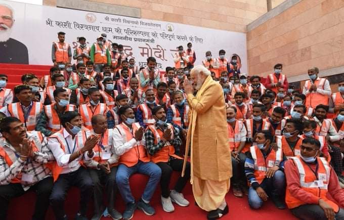 ಕಾಶಿ ವಿಶ್ವನಾಥ ಧಾಮ ಕಾರಿಡಾರ್ ನಿರ್ಮಿಸಿದ ಕಾರ್ಮಿಕರೊಂದಿಗೆ ಮೋದಿ ಅಭೂತಪೂರ್ವ ಸಮಯವನ್ನು ಕಳೆದರು. ಮೋದಿ ಅವರನ್ನು ಮೊದಲು ಸ್ವಾಗತಿಸಿದರು. ನಂತರ ಹೂವುಗಳು. ಬಳಿಕ ಎಲ್ಲರೊಂದಿಗೆ ಮಾತನಾಡಿದರು. ಕಾರ್ಯಕರ್ತರೊಂದಿಗೆ ಗುಂಪು ಫೋಟೊ ತೆಗೆಸಿಕೊಂಡರು. ಬಳಿಕ ಊಟಕ್ಕೆ ತೆರಳಿದರು. ಎಲ್ಲಾ ಕೆಲಸಗಾರರು ಅವನ ಪಕ್ಕದಲ್ಲಿ ಕುಳಿತಿದ್ದರು. ಮೋದಿ ಅವರು ಎಲ್ಲರೊಂದಿಗೆ ಊಟ ಮಾಡಿ ಕಾರ್ಯಕರ್ತರ ಕಾರ್ಯವನ್ನು ಮುಕ್ತಕಂಠದಿಂದ ಶ್ಲಾಘಿಸಿದರು.