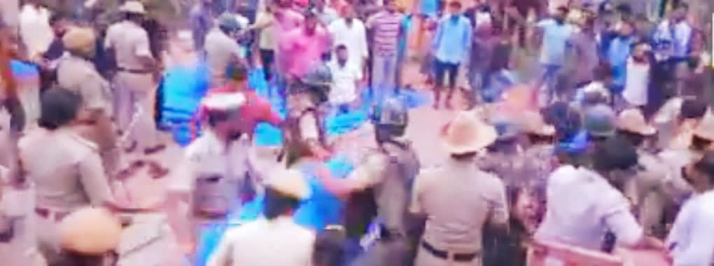 ಪೊಲೀಸರು ಎಷ್ಟು ಮನವಿ ಮಾಡಿಕೊಂಡರೂ ಕೂಡ ಪ್ರತಿಭಟನಕಾರರು ಜಾಗ ಬಿಟ್ಟು ಕದಲಿಲ್ಲ. ಸಾವಿರಾರು ಮಂದಿ ಠಾಣೆ ಬಳಿ ಜಮಾಯಿಸಿದರು. ಈ ವೇಳೆ ಎರಡು ಗುಂಪುಗಳ ನಡುವೆ ಘರ್ಷಣೆ ನಡೆಯಿತು. ಪರಿಸ್ಥಿತಿ ಹತೋಟಿಗೆ ತರಲು ಪೊಲೀಸರು ಗುಂಪು ಚದುರಿಸಲು ಲಾಠಿ ಚಾರ್ಜ್ ನಡೆಸಿದರು. ಈ ವೇಳೆ ಹತ್ತಕ್ಕೂ ಹೆಚ್ಚು ಕಾರ್ಯಕರ್ತರು ಗಾಯಗೊಂಡು ಆಸ್ಪತ್ರೆಗೆ ದಾಖಲಾಗಿದ್ದಾರೆ ಎನ್ನುವ ಮಾಹಿತಿ‌‌ ಲಭಿಸಿದೆ.