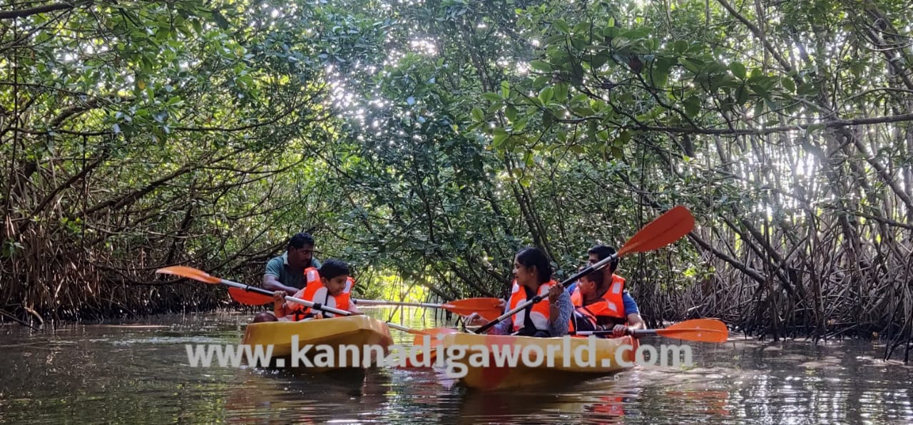 ಕಯಾಕಿಂಗ್ ಗಾಗಿ ಇಲ್ಲಿ ಒಟ್ಟು 8 ದೋಣಿಗಳಿದ್ದು, ಒಂದು ದೋಣಿಯಲ್ಲಿ ಇಬ್ಬರಂತೆ ಒಂದೇ ಸಮಯದಲ್ಲಿ ಒಟ್ಟು 12 ಜನ ಈ ಯಾನದಲ್ಲಿ ಭಾಗವಹಿಸಬಹುದಾಗಿದ್ದು, 2 ದೋಣಿಯಲ್ಲಿ ತರಬೇತುದಾರರು ಜೊತೆಗಿರುತ್ತಾರೆ. ಪ್ರತಿದಿನ ಬೆಳಗ್ಗೆ 7 ರಿಂದ ಸಂಜೆ 7 ರ ವರೆಗೆ , ಹಿನ್ನೀರಿನ ಉಬ್ಬರ ಇಳಿತ ದ ಆಧಾರದಲ್ಲಿ ಕಯಾಕಿಂಗ್ ಚಟುವಟಿಕೆ ನಡೆಯಲಿದ್ದು, ಕಲೆವೊಮ್ಮೆ ನೀರಿನ ಇಳಿತವಿದ್ದಲ್ಲಿ ಕಾಂಡ್ಲಾ ವನದ ಕೆಲವು ಒಳ ಪ್ರದೇಶಗಳಿಗೆ ತೆರಳಲು ಸಾಧ್ಯವಾಗುವುದಿಲ್ಲ.