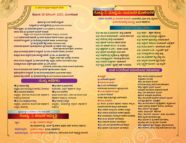 ಮುಖ್ಯ ಅತಿಥಿಗಳಾಗಿ ಸಚಿವರಾದ ಕೋಟ ಶ್ರೀ ನಿವಾಸ ಪೂಜಾರಿ,ಜಿಲ್ಲೆಯ ಶಾಸಕರು, ವಿಧಾನ ಪರಿಷತ್ ಸದಸ್ಯರು, ಉನ್ನತ ಅಧಿಕಾರಿಗಳು, ಭಾಗವಹಿಸಲಿದ್ದಾರೆ.