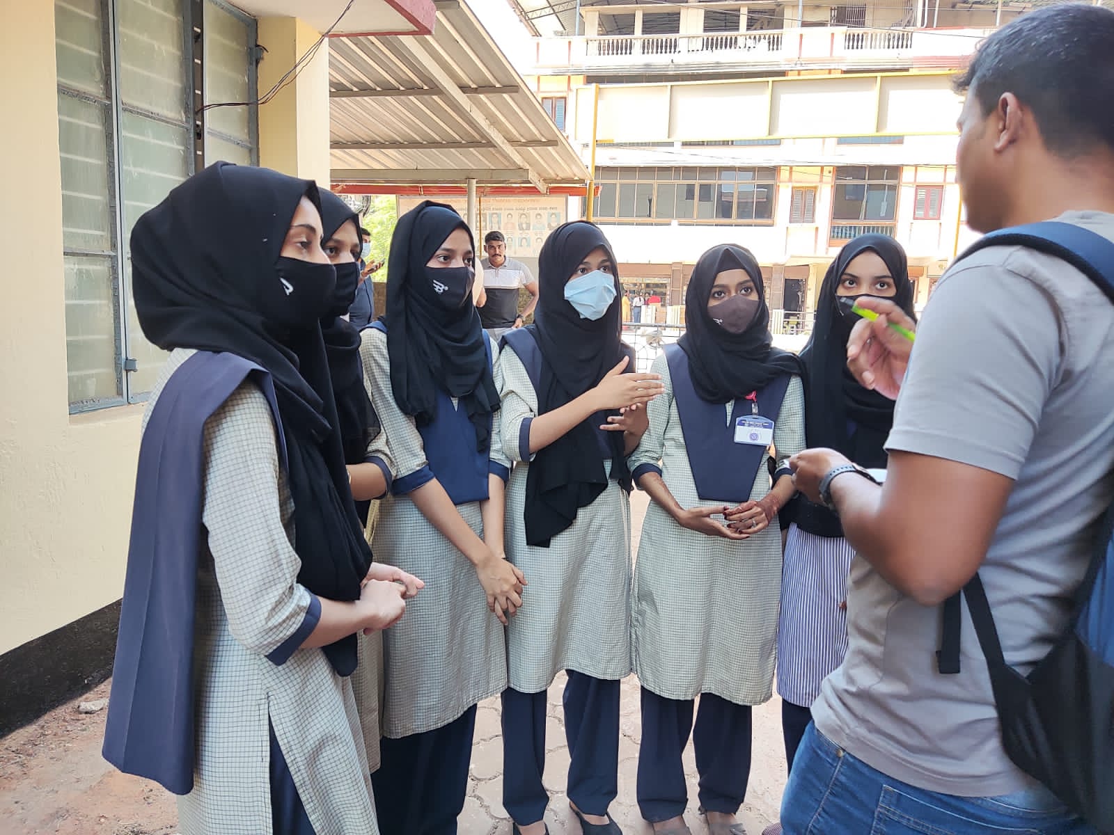 ವಿದ್ಯಾರ್ಥಿನಿಯರು ತಮ್ಮ ಧಾರ್ಮಿಕ ಹಕ್ಕನ್ನು ಗೌರವಿಸಿ ಹಿಜಾಬ್‌ನೊಂದಿಗೆ ತರಗತಿಗಳಿಗೆ ಪ್ರವೇಶಿಸಲು ಅವಕಾಶ ಕಲ್ಪಿಸುವಂತೆ ಪ್ರಾಂಶುಪಾಲರನ್ನು ಒತ್ತಾಯಿಸುತ್ತಿದ್ದಾರೆ.