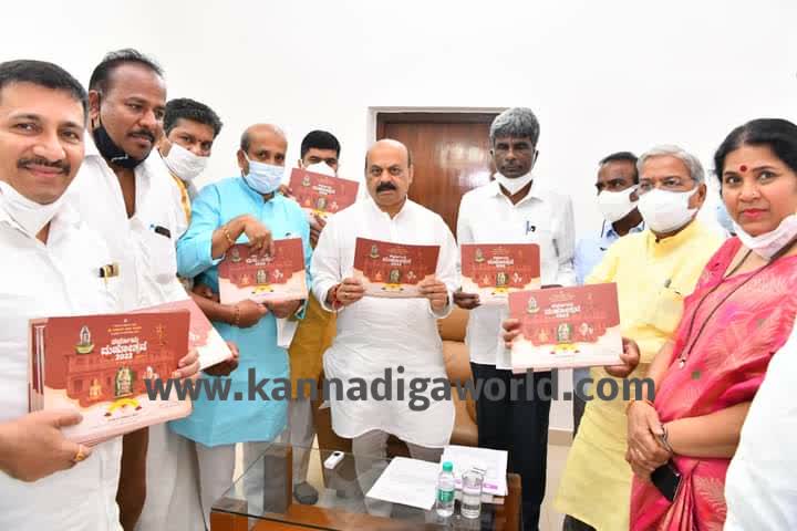 ಉಡುಪಿ: ಉಡುಪಿ ಶ್ರೀಕೃಷ್ಣ ಮಠದ ಪರ್ಯಾಯ ಮಹೋತ್ಸವದ ಆಮಂತ್ರಣ ಪತ್ರಿಕೆಯನ್ನು ಗುರುವಾರ ಮುಖ್ಯಮಂತ್ರಿ ಬಸವರಾಜ ಬೊಮ್ಮಾಯಿ ಅವರಿಗೆ ವಿಧಾನಸೌಧದಲ್ಲಿ ನೀಡಲಾಯಿತು.