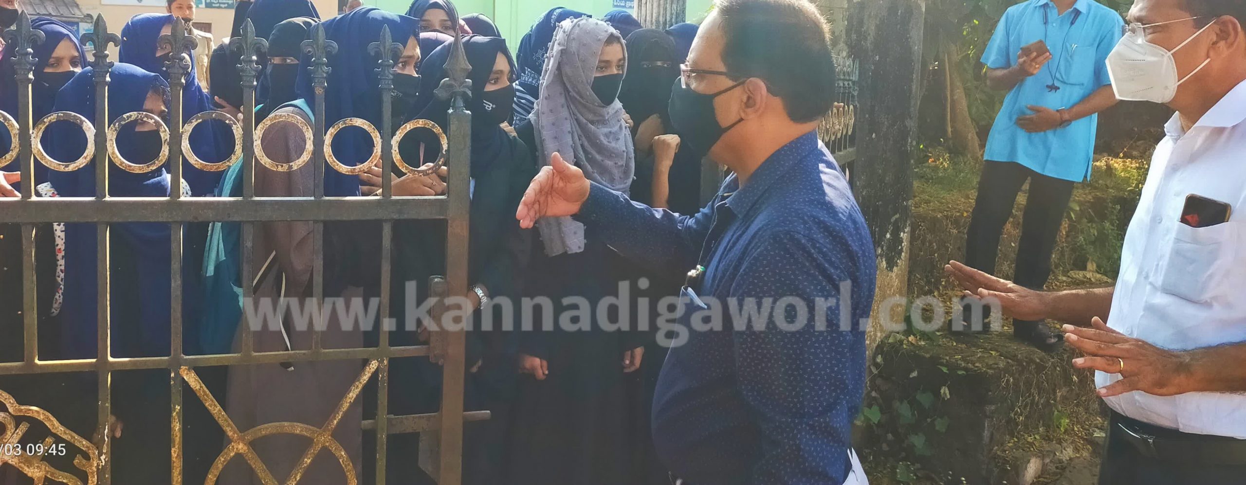 ಹಿಜಾಬ್ ಧರಿಸಿ ಬಂದ ವಿದ್ಯಾರ್ಥಿಗಳನ್ನು ಗೇಟಿನಲ್ಲಿ ತಡೆಯಲಾಯಿತು. ಕಾಲೇಜಿನ ಆವರಣದ ಹೊರಗೆ ನಿಂತು ನಾವು ಭಾರತದ ಪ್ರಜೆಗಳು, ಭಯೋತ್ಪಾಕರಲ್ಲ, ನಮಗೂ ಕಲಿಕೆಗೆ ಅವಕಾಶ ಕೊಡಿ ಎಂದು ಮನವಿ ಮಾಡುತ್ತಾ ಕಣ್ಣೀರು ಹಾಕಿದರು. ಮಧ್ಯಾಹ್ನದವರೆಗೆ ಕೂಡ ವಿದ್ಯಾರ್ಥಿಗಳು ಗೇಟ್ ಬಳಿ ನಿಂತ ದೃಶ್ಯ ಕಂಡುಬಂತು.