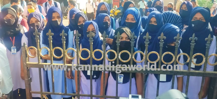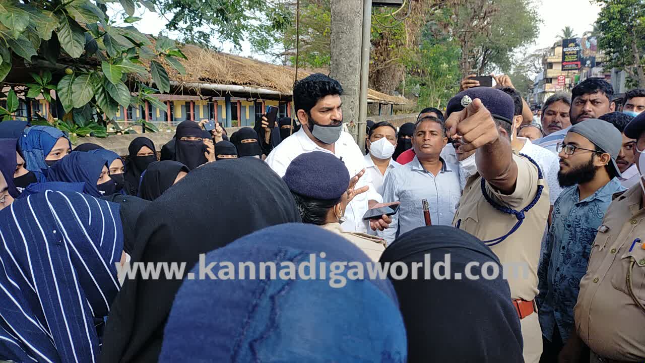 ವಿದ್ಯಾರ್ಥಿಗಳು ಕೇಸರಿ ಶಾಲು ಧರಿಸಿ ಜೈ ಶ್ರೀರಾಮ ಘೋಷಣೆ ಕೂಗುತ್ತಾ ಹೊರಬರುತ್ತಿದ್ದಂತೆ ಗೇಟಿನ ಬಳಿ ಬಿಗುವಿನ ವಾತಾವರಣ ನಿರ್ಮಾಣವಾಯಿತು. ಹಿಂದೂ ಸಂಘಟನೆ ಹಾಗೂ ಮುಸ್ಲಿಂ ಸಂಘಟನೆಯ ಮುಖಂಡರು ಅವರವರ ಸಮುದಾಯದ ವಿದ್ಯಾರ್ಥಿಗಳ ಪರ ಮಾತಿಗೆ ಮುಂದಾದರು. ಪೊಲೀಸರು ಮುಂದೆ ತಮ್ಮ ತಮ್ಮ ಅಹವಾಲು ಹೇಳಿಕೊಂಡರಾದರೂ ಸರಕಾರದ ಆದೇಶ ಪಾಲನೆ ಅಗತ್ಯವೆಂದು ಪೊಲೀಸರು ಎಲ್ಲರನ್ನೂ ಚದುರಿಸಿದರು. ವಿದ್ಯಾರ್ಥಿಗಳು ಕೇಸರಿ ಶಾಲು ತೆಗೆದು ಮತ್ತೆ ತರಗತಿ ಒಳಗೆ ಪ್ರವೇಶಿಸಿದರೂ, ವಿದ್ಯಾರ್ಥಿನಿಯರು ಸ್ಕಾರ್ಫ್ ತೆಗೆಯಲು ಒಪ್ಪದೇ ಮತ್ತೆ ಗೇಟಿನ ಬಳಿಯೇ ನಿಂತಿದ್ದರು.