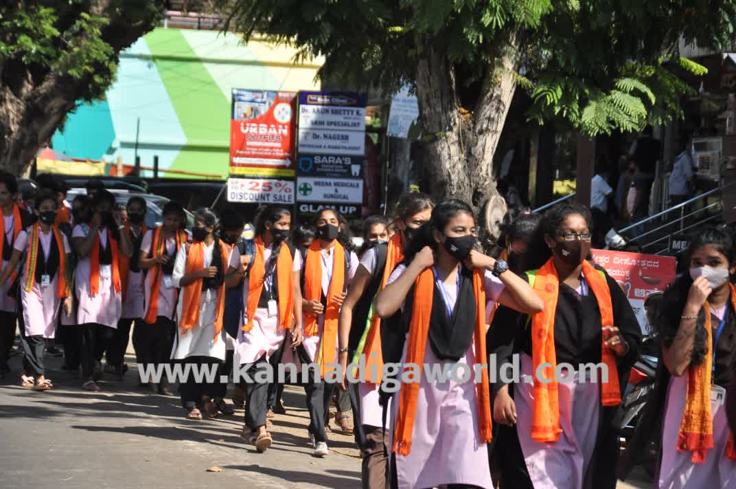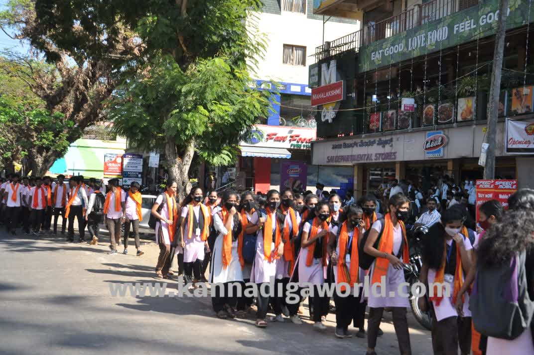 ಶನಿವಾರ ಬೆಳ್ಳಂಬೆಳಿಗ್ಗೆ ಸ್ಥಳೀಯ ಆರ್.ಎನ್.ಶೆಟ್ಟಿ ಪದವಿ ಪೂರ್ವ ಕಾಲೇಜಿನಲ್ಲಿ ಹಿಜಾಬ್ ಧರಿಸಿದ ವಿದ್ಯಾರ್ಥಿನಿಯರನ್ನು ಒಳಬಿಟ್ಟಿದ್ದರೆಂದು ಕೆಲವು ವಿದ್ಯಾರ್ಥಿಗಳು ಆಕ್ರೋಶ ವ್ಯಕ್ತ ಪಡಿಸಿದ ಹಿನ್ನೆಲೆಯಲ್ಲಿ ಕಾಲೇಜಿಗೆ ರಜೆ ಘೋಷಿಸಲಾಯಿತು. ಕಾಲೇಜಿನಿಂದ ಹೊರಬಂದ ವಿದ್ಯಾರ್ಥಿಗಳು ಕೇಸರಿ ಶಾಲು ಧರಿಸಿ ಕುಂದಾಪುರ ಶಾಸ್ತ್ರೀವೃತ್ತದ ತನಕ ಘೋಷಣೆ ಕೂಗುತ್ತಾ ಬಂದರು.