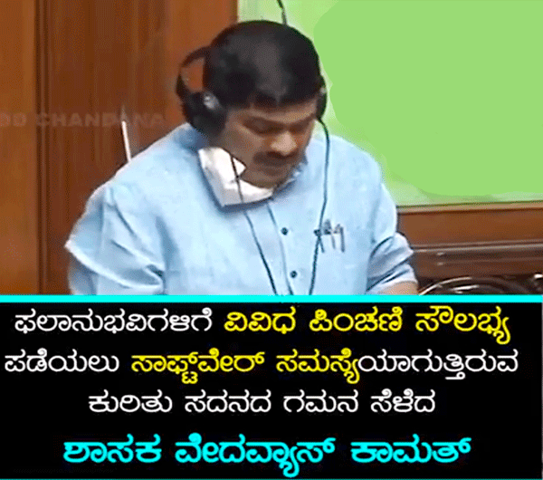 ಮಂಗಳೂರು / ಬೆಂಗಳೂರು: ಸಾಫ್ಟ್ವೇರ್ ಸಮಸ್ಯೆಯಿಂದಾಗಿ ಬಿಪಿಎಲ್ ಕಾರ್ಡ್, ಹಿರಿಯ ನಾಗರಿಕ ಪಿಂಚಣಿ, ಸಂಧ್ಯಾ ಸುರಕ್ಷ, ಅಂಗ ವಿಕಲಮಾಸಿಕ ಪಿಂಚಣಿ ಸೇರಿದಂತೆ ವಿವಿಧ ಮಾಸಿಕ ಪಿಂಚಣಿ ಪಡೆಯಲು ಫಲಾನುಭವಿಗಳು ಅನುಭವಿಸುವ ಸಮಸ್ಯೆಯನ್ನು ಬಗೆಹರಿಸುವ ನಿಟ್ಟಿನಲ್ಲಿ ಶಾಸಕ ವೇದವ್ಯಾಸ್ ಕಾಮತ್ ಅವರು ಸದನದಲ್ಲಿ ಗಮನ ಸೆಳೆದರು.
