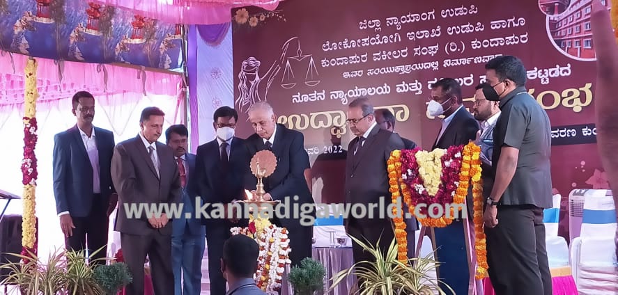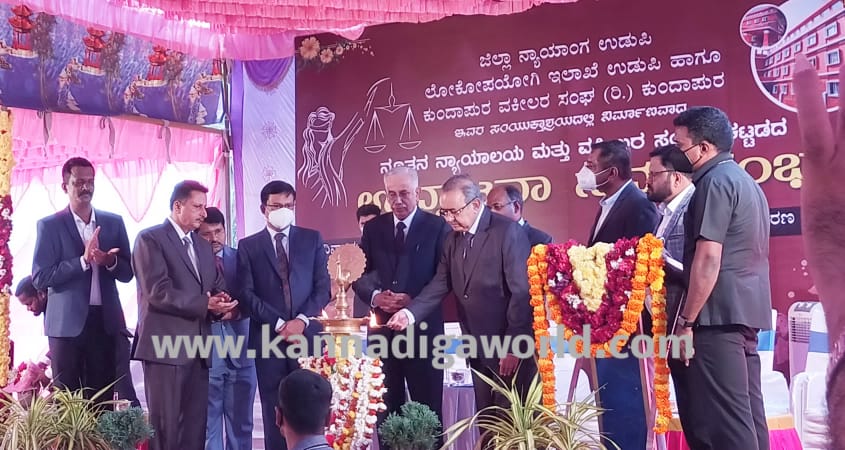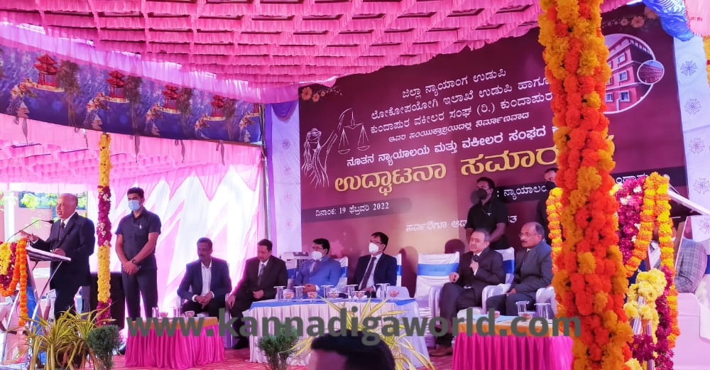 ಕುಂದಾಪುರ ಹೊಸ ಬಸ್ ನಿಲ್ದಾಣದ ಬಳಿಯ ನ್ಯಾಯಾಲಯ ಆವರಣದಲ್ಲಿ ಶನಿವಾರ ನಡೆದ ಸಮಾರಂಭದಲ್ಲಿ ಅವರು ನೂತನವಾಗಿ ನಿರ್ಮಾಣಗೊಂಡಿರುವ ನ್ಯಾಯಾಲಯ ಮತ್ತು ವಕೀಲರ‌ ಸಂಘದ ಕಟ್ಟಡದ ಉದ್ಘಾಟನೆ ನೆರವೇರಿಸಿ ಮಾತನಾಡಿದರು.