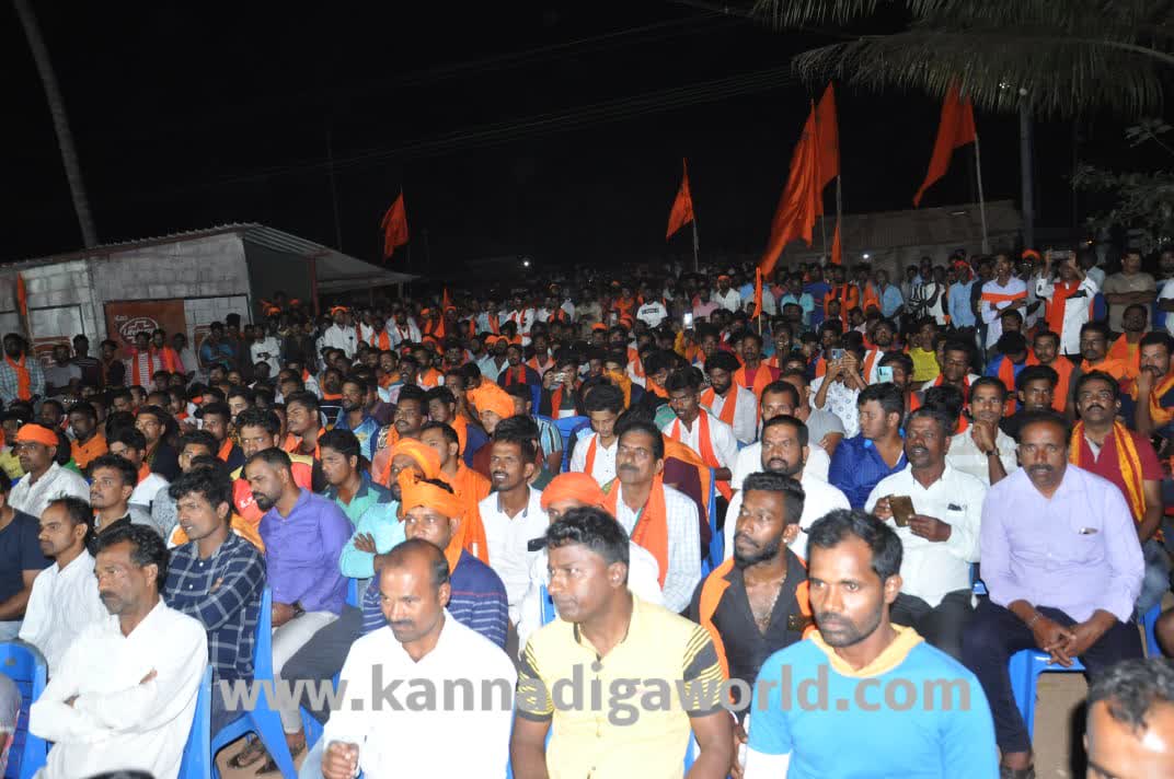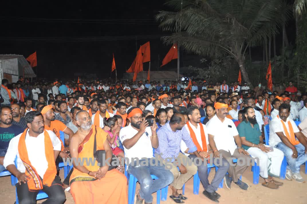 ನಾವು ಆರಾಧಿಸುವ ದೇವದೇವತೆಗಳ ಕೈಯಲ್ಲಿ ಶಸ್ತ್ರವಿದೆ. ಧರ್ಮದ ರಕ್ಷಣೆಗೆ ಶಾಸ್ತ್ರ ಓದುವ ಜೊತೆಗೆ ಶಸ್ತ್ರ ಹಿಡಿಯುವ ಅನಿವಾರ್ಯತೆಯಿದೆ. ಕೆಲವರ ಸಾವುಗಳು ಇನ್ನು ಸಾವಿರ ಮಂದಿ ಹುಟ್ಟಲು ಕಾರಣವಾಗುತ್ತದೆ. ಹಿಂದೂ ಸಮಾಜ ನಾಶ ಮಾಡಲು ಜಿಹಾದಿಗಳು ಮುಂದಾಗಿದ್ದಾರೆ. ಹೆದರಿಸುವ ಮಂದಿಗೆ ತಕ್ಕ ಉತ್ತರ ಕೊಡಲು ಸಿದ್ಧರಾಗಬೇಕು. ಯಾವುದೇ ಪಕ್ಷದವರು ಯಾವುದೇ ಜಾತಿಯವರು ಆಗಿದ್ದರು ಕೂಡ ಮನೆಯಲ್ಲೊಂದು ಭಗವಧ್ವಜ ಇರಲಿ. ಹೆಗಲ ಮೇಲೆ ಕೇಸರಿ ಶಾಲಿರಲಿ. ಇದರಿಂದ ಧರ್ಮ ರಕ್ಷಣೆ ಸಾಧ್ಯ ಎಂದು ಅವರು ಕರೆಕೊಟ್ಟರು.