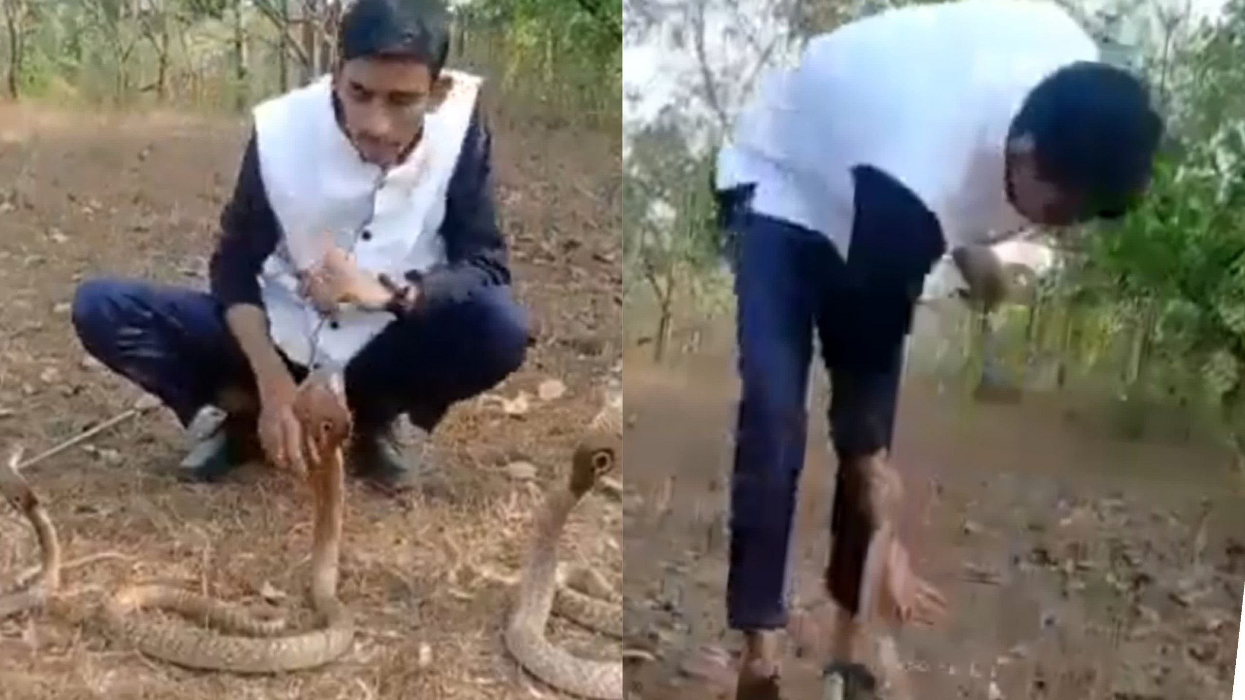 ಇನ್ನು ಯುವಕ ಹಾವುಗಳ ಮುಂದೆ ಕುಣಿಯುತ್ತಿದ್ದು, ಆಗ ಒಂದು ನಾಗರಹಾವು ಪ್ರತಿದಾಳಿ ನಡೆಸಿ, ಆತನ ಕಾಲನ್ನು ಕಚ್ಚಲು ಯತ್ನಿಸುತ್ತದೆ.