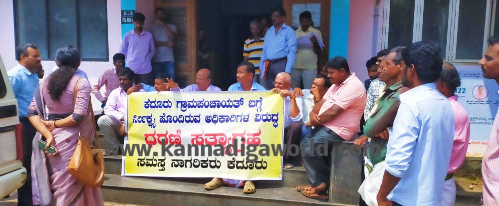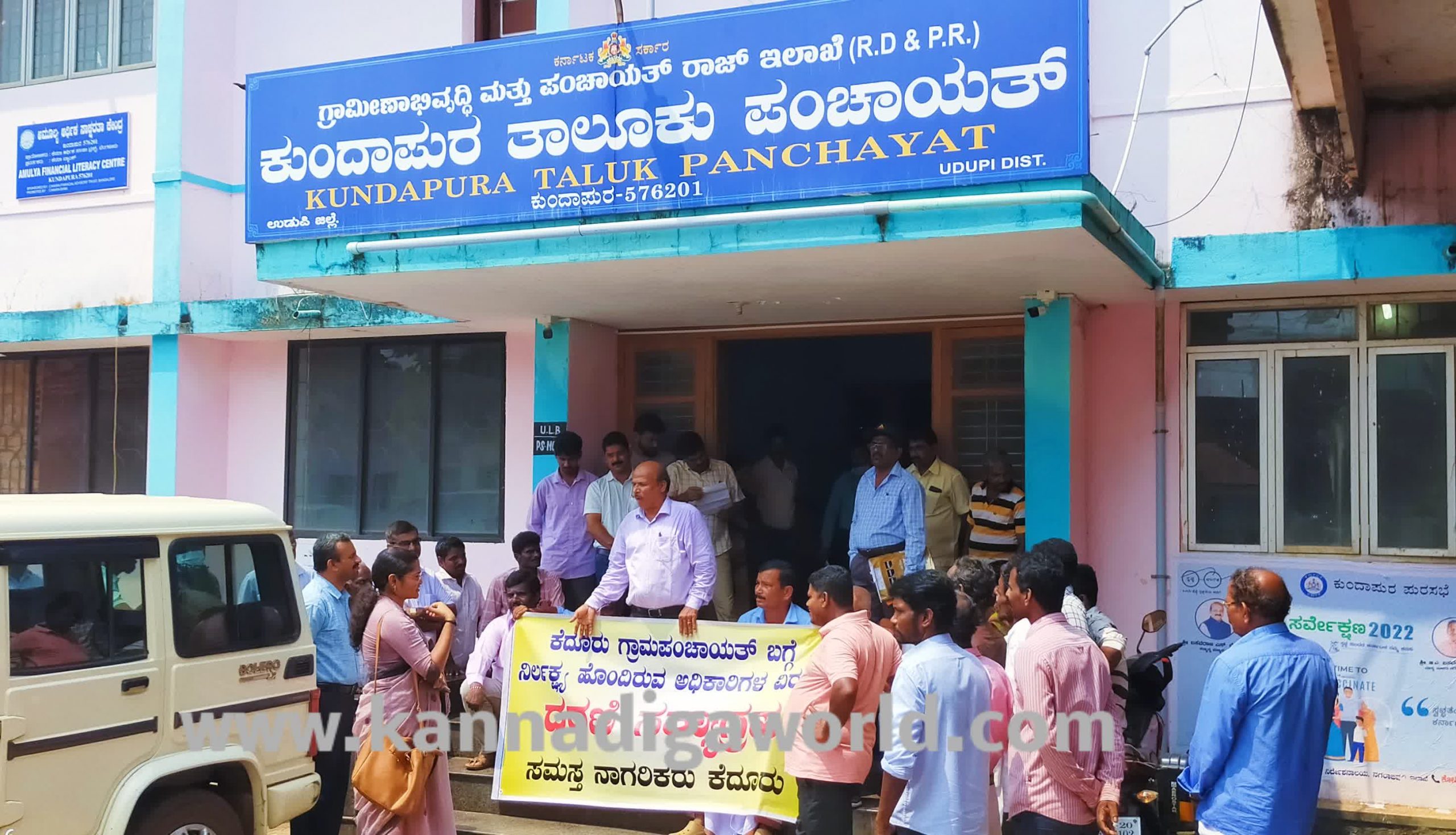 ಕೆದೂರು ಗ್ರಾ.ಪಂ ಅಧಿಕಾರಿಗಳ ಕರ್ತವ್ಯಲೋಪ?; ಪಿಡಿಓ ಬದಲಾವಣೆಗೆ ಆಗ್ರಹ-ಕುಂದಾಪುರ ತಾ.ಪಂ ಕಛೇರಿಯೆದುರು ಧರಣಿ