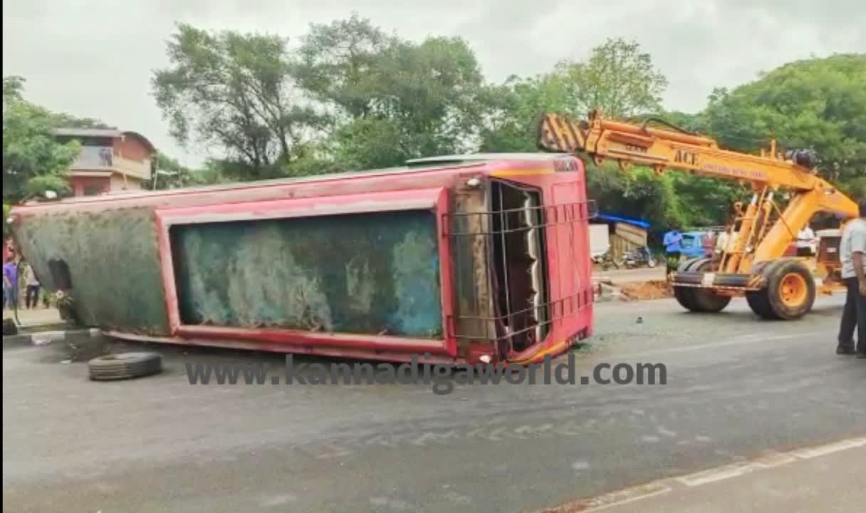 ಉಡುಪಿಯಲ್ಲಿ ಖಾಸಗಿ ಬಸ್ ಪಲ್ಟಿ; 20 ಪ್ರಯಾಣಿಕರಿಗೆ ಗಾಯ, ಬಸ್ ಸಂಪೂರ್ಣ ನಜ್ಜುಗುಜ್ಜು