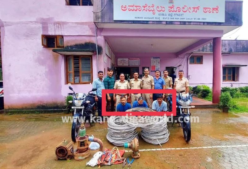 ಕುಂದಾಪುರ: ಮೆಸ್ಕಾಂ ಇಲಾಖೆಯ ಕಂಬಗಳನ್ನು ತುಂಡರಿಸಿ ಅಲ್ಯೂಮಿನಿಯಂ ವಾಹಕ, ಪಂಪು ಸೆಟ್ ಕಳವು ಮಾಡಿದ್ದ ಮೂವರು ಆರೋಪಿಗಳನ್ನು ಕೃತ್ಯ ನಡೆದ 24 ಗಂಟೆಯೊಳಗೆ ಬಂಧಿಸುವಲ್ಲಿ ಅಮಾಸೆಬೈಲು ಠಾಣಾ ಪೊಲೀಸರು ಯಶಸ್ವಿಯಾಗಿದ್ದಾರೆ.