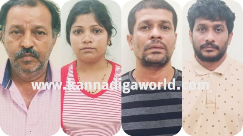 (ಆರೋಪಿಗಳಾದ ಸದಾನಂದ, ಶಿಲ್ಪಾ, ಸತೀಶ್, ನಿತಿನ್)