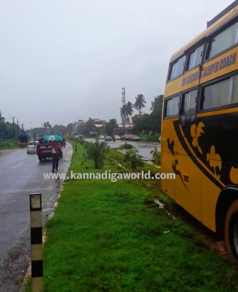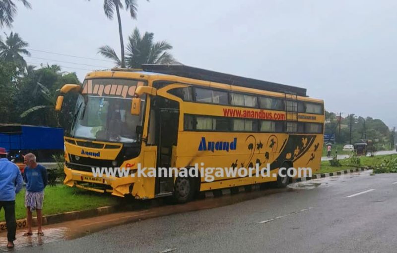 ಮುಂಬೈನಿಂದ ಮಂಗಳೂರಿನತ್ತ ಸಾಗುತ್ತಿದ್ದ ಆನಂದ್ ಹೆಸರಿನ ಖಾಸಗಿ ಬಸ್ ಇದಾಗಿದ್ದು ಕುಂಭಾಸಿ ಸಮೀಪದ ಕೊರವಡಿ ಕ್ರಾಸ್ ಬಳಿ ಹೆದ್ದಾರಿ ಹೊಂಡಕ್ಕೆ ಬಸ್ ಟಯರ್ ಇಳಿದಾಗ ಬಸ್ ಚಾಲಕನ ನಿಯಂತ್ರಣ ಕಳೆದುಕೊಂಡು ಸುಮಾರು 300 ಮೀಟರ್ ದೂರ ಡಿವೈಡರ್ ಏರಿ ಸಾಗಿದ್ದು ಚಾಲಕನ ಜಾಗರುಕತೆಯಿಂದಾಗಿ ಪಲ್ಟಿಯಾಗುವುದು ತಪ್ಪಿದಂತಾಗಿದೆ. ಹೀಗೆ ಅಪಾಯದಲ್ಲಿ ಸಾಗಿದ ಬಸ್ ಕನ್ನುಕೆರೆ ಮಸೀದಿ ಎದುರು ಡಿವೈಡರ್ ಏರಿ ನಿಂತಿದೆ. ಬಸ್ಸಿನಲ್ಲಿ 40ಕ್ಕೂ ಅಧಿಕ ಪ್ರಯಾಣಿಕರು ಇದ್ದರು ಎಂದು ತಿಳಿದುಬಂದಿದ್ದು ಯಾವುದೇ ಅಪಾಯ ಸಂಭವಿಸಿಲ್ಲ.