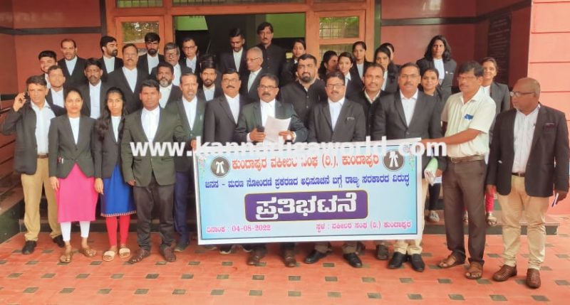 ಕುಂದಾಪುರ ವಕೀಲರ ಸಂಘದ ಅಧ್ಯಕ್ಷ ಬನ್ನಾಡಿ ಸೋಮನಾಥ ಹೆಗ್ಡೆ ಅವರು ಮಾತನಾಡಿ, ಜನನ ಮತ್ತು ಮರಣ ನೋಂದಣಿ ಕಾಯ್ದೆಗೆ ತಿದ್ದುಪಡಿ ತಂದಿರುವುದರಿಂದ ಸಾರ್ವಜನಿಕರಿಗೆ ಅನ್ಯಾಯವಾಗುತ್ತದೆ. ಜನನ ಮತ್ತು ಮರಣ ಪ್ರಮಾಣ ಪತ್ರಗಳನ್ನು ಸ್ಥಳೀಯ ನ್ಯಾಯಾಲಯದಲ್ಲಿ ಪ್ರಕರಣ ದಾಖಲಿಸಿ ಪ್ರಮಾಣ ಪತ್ರ ಪಡೆಯಲು ಅನುಕೂಲವಾಗಿತ್ತು. ಆದರೆ ಈಗ ಸರ್ಕಾರದ ಸುತ್ತೋಲೆಯಿಂದ ಉಪವಿಭಾಗಾಧಿಕಾರಿಗಳ ಕಚೇರಿಗೆ ಹೋಗಲಿದ್ದು ಇದು ಅಸಾಂವಿಧಾನಿಕ ನಿರ್ಧಾರ ಎಂದರು.