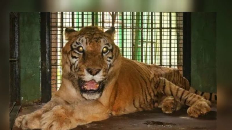 ಶಿವಮೊಗ್ಗ: ಇಲ್ಲಿನ ತ್ಯಾವರೆಕೊಪ್ಪ ಹುಲಿ ಮತ್ತು ಸಿಂಹಧಾಮದಲ್ಲಿ ರಾಜ್ಯದಲ್ಲೆ ದೀರ್ಘಾಯುಷಿ ಎಂದು ಕರೆಸಿಕೊಂಡಿದ್ದ ಹನುಮ ಹುಲಿ ಅನಾರೋಗ್ಯದಿಂದ ಮೃತಪಟ್ಟಿದೆ.
