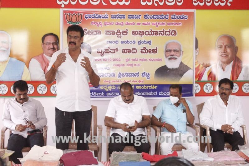 ಖಾದಿ ಮೇಳಕ್ಕೆ ಚಾಲನೆ ನೀಡಿದ ಕುಂದಾಪುರ ಶಾಸಕ ಹಾಲಾಡಿ ಶ್ರೀನಿವಾಸ ಶೆಟ್ಟಿ ಮಾತನಾಡಿ, ಸ್ವಾತಂತ್ರ್ಯ ಪೂರ್ವದಲ್ಲಿಯೇ ಮಹಾತ್ಮ ಗಾಂಧೀಜಿ ಅವರು ಖಾದಿ ಬಳಕೆಗೆ ಕರೆ ನೀಡಿದ್ದರು. ಖಾದಿ ನಮ್ಮ ದೇಶದ ಪ್ರತೀಕ. ಅದನ್ನು ನಾವು ಹೆಚ್ಚೆಚ್ಚು ಬಳಸುವ ಮೂಲಕ ದೇಶದ ಬೆಳವಣಿಗೆಗೆ ಕೊಡುಗೆ ಸಲ್ಲಿಸೋಣ ಎಂದು ಹೇಳಿದರು.
