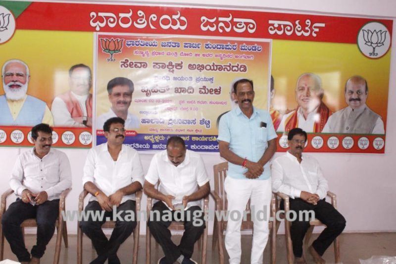 ಕುಂದಾಪುರ: ಗಾಂಧಿ ಜಯಂತಿ ಹಾಗೂ ಪ್ರಧಾನಿ ನರೇಂದ್ರ ಮೋದಿ ಅವರ ಜನ್ಮ ದಿನದ ಅಂಗವಾಗಿ ಸೇವಾ ಪಾಕ್ಷಿಕ ಅಭಿಯಾನದಡಿ ಬಿಜೆಪಿ ಕುಂದಾಪುರ ಮಂಡಲದ ವತಿಯಿಂದ ಬಿಜೆಪಿ ಕಚೇರಿಯಲ್ಲಿ ಬೃಹತ್ ಖಾದಿ ಮೇಳ ಭಾನುವಾರ ನಡೆಯಿತು.