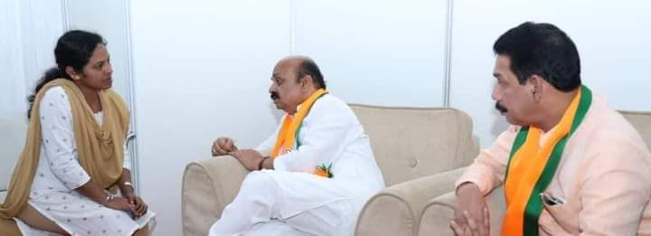ಬಿಜೆಪಿ ಕಾರ್ಯಕರ್ತ ದಿವಂಗತ ಪ್ರವೀಣ್ ಕುಮಾರ್ ನೆಟ್ಟಾರು ಅವರ ಪತ್ನಿ ನೂತನ ಅವರು ಬಿಜೆಪಿ ರಾಜ್ಯಾಧ್ಯಕ್ಷ ನಳಿನ್ ಕುಮಾರ್ ಕಟೀಲ್ ಅವರೊಂದಿಗೆ ಬಸವರಾಜ ಬೊಮ್ಮಾಯಿ ಅವರನ್ನು ಭೇಟಿ ಮಾಡಿದರು. ಸರ್ಕಾರದಿಂದ ಕೆಲಸ ಕೊಡಿಸಿ ಮಂಗಳೂರಿನಲ್ಲಿ ಕಾರ್ಯನಿರ್ವಹಿಸಲು ಸಹಕರಿಸಿದಕ್ಕಾಗಿ ಧನ್ಯವಾದ ಸಮರ್ಪಿಸಿದರು.
