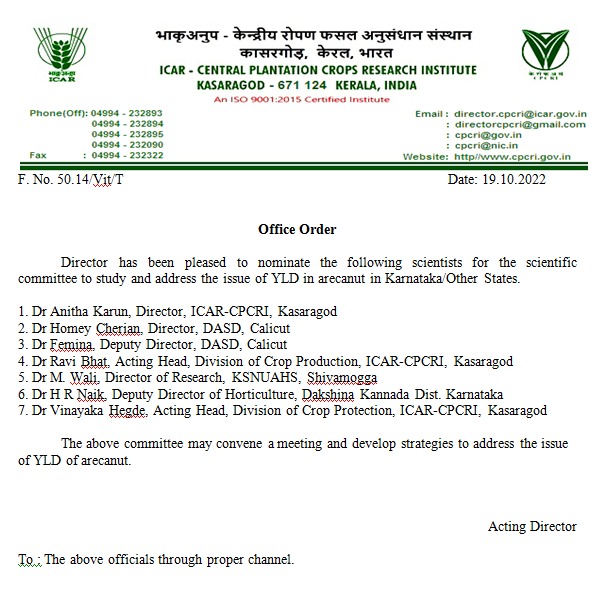 ನವದೆಹಲಿ: ಕೇಂದ್ರ ಸರ್ಕಾರದ ಕೃಷಿ, ರೈತ ಕಲ್ಯಾಣ ಸಚಿವರಾದ ನರೇಂದ್ರ ಸಿಂಗ್ ತೋಮಾರ್ ಅವರು ಕರ್ನಾಟಕದಲ್ಲಿ ಮಲೆನಾಡ ಭಾಗದಲ್ಲಿ ಕಾಣಿಸಿಕೊಂಡ ಎಲೆ ಚುಕ್ಕೆ ರೋಗದ (YLD) ಅಧ್ಯಯನ ಮತ್ತು ಸಮಸ್ಯೆಯನ್ನು ಪರಿಹರಿಸಲು ICAR ಗೆ ( Central Plantation Crops Reasech Institute ) ನಿರ್ದೇಶಿಸಿದ್ದಾರೆ.