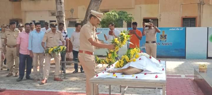 ದಾವಣಗೆರೆ ಡಿಎಆರ್ ಆವರಣದಲ್ಲಿ ಸರ್ಕಾರಿ ಗೌರವಗಳೊಂದಿಗೆ ಅಂತಿಮ ನಮನ ಸಲ್ಲಿಸಲಾಯಿತು. ಜಿಲ್ಲಾ ಪೊಲೀಸ್ ಅಧೀಕ್ಷಕ ಸಿ.ಬಿ ರಿಷ್ಯಂತ್ ಹಾಗೂ ಪೊಲೀಸ್ ಅಧಿಕಾರಿಗಳು, ಸಿಬ್ಬಂದಿಗಳು ಪುಷ್ಪ ನಮನ ಸಲ್ಲಿಸುವ ಮೂಲಕ ಭಾವಪೂರ್ಣ ಶ್ರದ್ಧಾಂಜಲಿ ಅರ್ಪಿಸಿದರು.