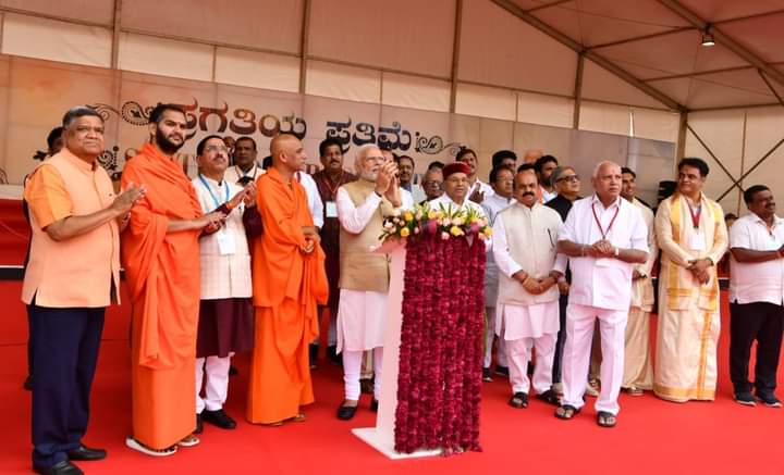 ಬೆಂಗಳೂರು: ಇಂದು ಕನಕದಾಸ ಮತ್ತು ಒನಕೆ ಓಬವ್ವ ಅವರ ಜನ್ಮಜಯಂತಿಯಾಗಿದ್ದು ಈ ಶುಭ ಗಳಿಗೆಯಲ್ಲಿ ವಿಶ್ವದಲ್ಲಿ ಮನ್ನಣೆ ಗಳಿಸಿರುವ ಬೆಂಗಳೂರಿನಲ್ಲಿರುವುದು ನನಗೆ ಅತ್ಯಂತ ಸಂತಸ ತಂದಿದೆ ಎಂದು ಪ್ರಧಾನ ಮಂತ್ರಿ ನರೇಂದ್ರ ಮೋದಿ ಹೇಳಿದ್ದಾರೆ.
