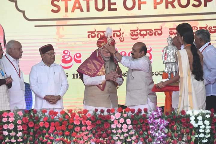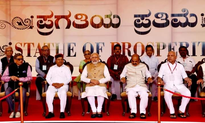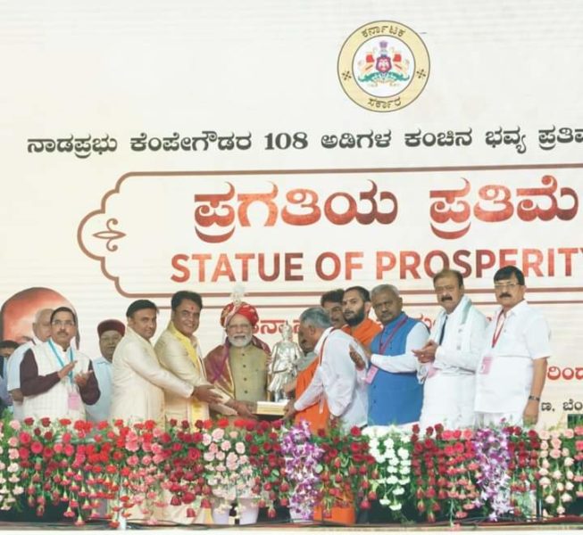 ಕೆಂಪೇಗೌಡ ವಿಮಾನ ನಿಲ್ದಾಣ ಬಳಿ 108 ಅಡಿ ಎತ್ತರದ ಕೆಂಪೇಗೌಡ ಕಂಚಿನ ಪ್ರತಿಮೆಯನ್ನು ಅನಾವರಣಗೊಳಿಸಿದ ಬಳಿಕ ಸಾರ್ವಜನಿಕ ಕಾರ್ಯಕ್ರಮವನ್ನುದ್ದೇಶಿಸಿ ಮಾತನಾಡಿದರು.