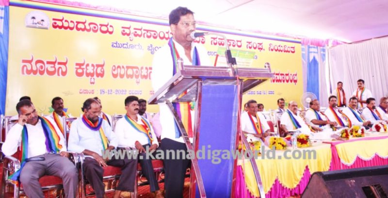 ಅವರು ಭಾನುವಾರ ಮುದೂರು ವ್ಯವಸಾಯ ಸೇವಾ ಸಹಕಾರಿ ಸಂಘದ ನೂತನ ಕಟ್ಟಡ ಉದ್ಘಾಟನೆ ಹಾಗೂ ಪ್ರಧಾನ ಕಚೇರಿ ಸ್ಥಳಾಂತರ ಕಾರ್ಯಕ್ರಮವನ್ನು ಉದ್ಘಾಟಿಸಿ ಮಾತನಾಡಿದರು.
