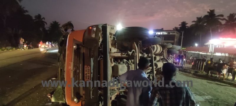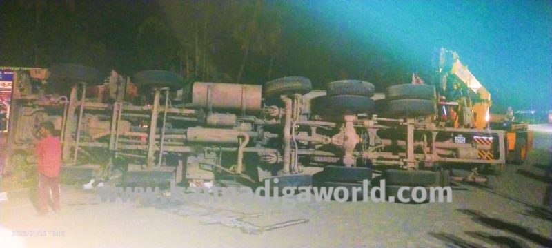 ಕೊಪ್ಪಳದಿಂದ ಮಂಗಳೂರಿಗೆ ಸಾಗುತ್ತಿದ್ದ ಸಿಮೆಂಟ್ ಲೋಡ್ ತುಂಬಿದ 14 ಚಕ್ರದ ಬೃಹತ್ ಲಾರಿ ಇದಾಗಿದ್ದು ಚಾಲಕ ಪಾನಮತ್ತನಾಗಿ ಲಾರಿ ಚಲಾಯಿಸಿದ್ದು ಈ ಅವಘಡಕ್ಕೆ ಕಾರಣ ಎನ್ನಲಾಗಿದೆ.
