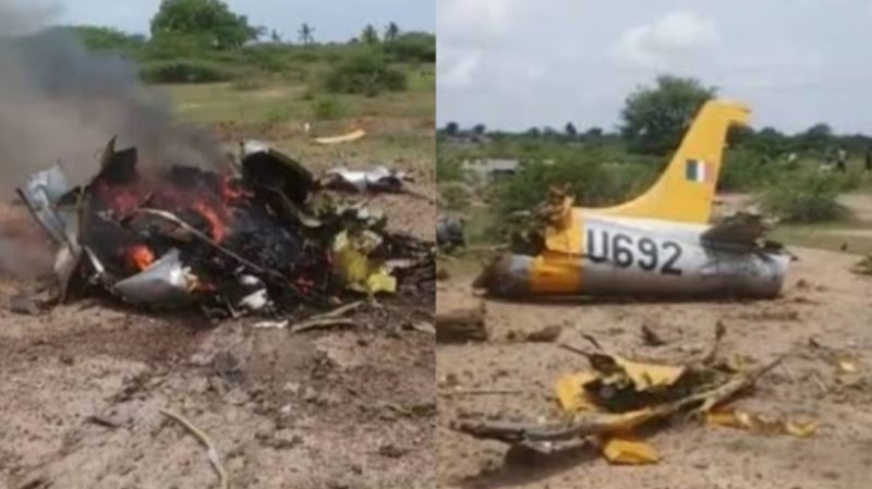 ಇಂದು (ಜೂ.1 ಗುರುವಾರ) ಮಧ್ಯಾಹ್ನ 12 ಗಂಟೆ ಸುಮಾರಿಗೆ ಜೆಟ್ ವಿಮಾನ ಪತನಗೊಂಡು, ಹೊತ್ತಿ ಉರಿದಿದೆ. ವಿಮಾನದಲ್ಲಿದ್ದ ಇಬ್ಬರು ಪೈಲಟ್​ಗಳು ಪ್ಯಾರಾಚೂಟ್ ಬಳಸಿ ವಿಮಾನದಿಂದ ಜಿಗಿದು ಪ್ರಾಣ ಉಳಿಸಿಕೊಂಡಿದ್ದಾರೆ.
