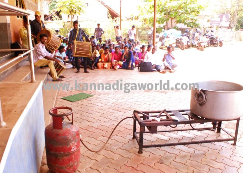 ಬೆಳಿಗ್ಗೆ 11 ಗಂಟೆ ಹೊತ್ತಿಗೆ ಪಡುಕೋಣೆ ಕೊರಗ ಸಮುದಾಯದ ನಿವಾಸದಿಂದ ಸಾಂಪ್ರದಾಯಿಕ ವಾದನಗಳಾದ ಡೋಲು, ಕೊಳಲು ನಾದದೊಂದಿಗೆ ನೂರಾರು ಮಂದಿ ಕೊರಗರು ನಾಡ ಗ್ರಾ.ಪಂ ಕಚೇರಿ ತನಕ ಆಗಮಿಸಿದ್ದು ಜಿಲ್ಲಾಧಿಕಾರಿ ಸ್ಥಳಕ್ಕಾಗಮಿಸಿ ತಮ್ಮ ಅಹವಾಲು ಸ್ವೀಕರಿಸಿ ಕ್ರಮವಹಿಸಬೇಕು ಎಂದು ತಿಳಿಸಿದರು. ಡಿಸಿ ಆಗಮನ ವಿಳಂಭವಾಗುವ ಮಾಹಿತಿ ಸಿಗುತ್ತಿದ್ದಂತೆಯೇ ಅನಿರ್ಧಿಷ್ಟಾವಧಿ ಧರಣಿ ಮುಂದುವರೆಯುವ ಸಾಧ್ಯತೆ ಇದ್ದರಿಂದ ಗ್ಯಾಸ್ ಒಲೆ ತರಿಸಿ, ಗ್ರಾ.ಪಂ ಎದುರೆ ಗಂಜಿ ಊಟ ತಯಾರಿಸಿ ಧರಣಿ ನಿರತರು ಮಧ್ಯಾಹ್ನ ಊಟ ಮಾಡಿದರು. ಇನ್ನು ಮಧ್ಯಾಹ್ನದ ನಂತರವೂ ಪ್ರತಿಭಟನೆ ಮುಂದುವರೆದಿದ್ದುವ ಆಗಮಿಸಿದ್ದ ಮಹಿಳೆಯೊಬ್ಬರು ಪಂಚಾಯಿತಿ ಎದುರಲ್ಲೇ ತೊಟ್ಟಿಲು (ಸೀರೆ ಜೋಲಿ) ಕಟ್ಟಿ ಮಗುವನ್ನ ಮಲಗಿಸಿದರು.