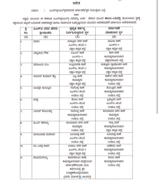 ವರ್ಗಾವಣೆ ಹೊಂದಿ ಹೊಸ ಸ್ಥಳಗಳಿಗೆ ನೇಮಕಗೊಂಡ‌ 32 ಸಬ್ ಇನ್ಸ್‌ಪೆಕ್ಟರ್ ವಿವರ ಹೀಗಿದೆ.