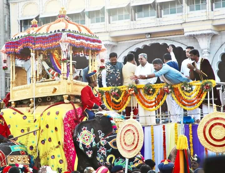 ಮುಖ್ಯಮಂತ್ರಿ ಸಿದ್ದರಾಮಯ್ಯ, ಉಪಮುಖ್ಯಮಂತ್ರಿ ಡಿ.ಕೆ.ಶಿವಕುಮಾರ್, ಜಿಲ್ಲಾ ಉಸ್ತುವಾರಿ ಸಚಿವ ಎಚ್.ಸಿ. ಮಹದೇವಪ್ಪ,ರಾಜವಂಶಸ್ಥ ಯದುವೀರ್ ಕೃಷ್ಣದತ್ತ ಚಾಮರಾಜ ಒಡೆಯರ್ ಚಾಮುಂಡೇಶ್ವರಿ ದೇವಿಗೆ ಪೂಜೆ ಸಲ್ಲಿಸಿದರು. ಇದಕ್ಕೂ ಮುನ್ನ ಮುಖ್ಯಮಂತ್ರಿಗಳು ನಂದಿಧ್ವಜ ಪೂಜೆಯಲ್ಲಿ ಪಾಲ್ಗೊಳ್ಳುವುದರೊಂದಿಗೆ ಕಲಾತಂಡಗಳು, ಸ್ತಬ್ಧಚಿತ್ರಗಳ ಮರವಣಿಗೆ ಆರಂಭವಾಯಿತು.