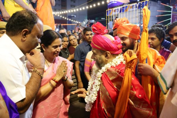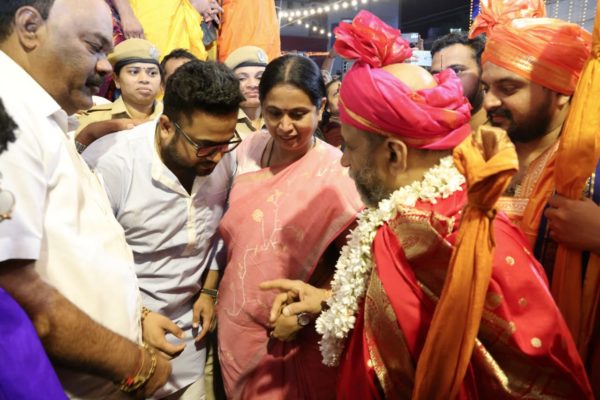 ಉಡುಪಿಯಲ್ಲಿ ನಡೆಯುತ್ತಿರುವ ಪರ್ಯಾಯ ಮಹೋತ್ಸವದ ಅಂಗವಾಗಿ ಗುರುವಾರ ಬೆಳಗಿನ ಜಾವ 2.30ರಿಂದ ನಡೆದ ಸ್ತಬ್ಧಚಿತ್ರಗಳ ಮೆರವಣಿಗೆಯಲ್ಲಿ ಪರ್ಯಾಯ ಮಹೋತ್ಸವ ಸಮಿತಿಯ ಗೌರವಾಧ್ಯಕ್ಷರೂ ಆಗಿರುವ ಮಹಿಳಾ ಮತ್ತು ಮಕ್ಕಳ ಅಭಿವೃದ್ಧಿ, ವಿಕಲಚೇತನರ ಹಾಗೂ ಹಿರಿಯ ನಾಗರೀಕರ ಸಬಲೀಕರಣ ಸಚಿವರು ಹಾಗೂ ಉಡುಪಿ ಜಿಲ್ಲಾ ಉಸ್ತುವಾರಿ ಸಚಿವೆ ಲಕ್ಷ್ಮೀ ಆರ್ ಹೆಬ್ಬಾಳ್ಕರ್ ಭಾಗವಹಿಸಿದರು. ಈ ವೇಳೆ ಪರ್ಯಾಯ ಶ್ರೀ ಕೃಷ್ಣ ಪೂಜಾ ಕೈಂಕರ್ಯ ನೇರವೇರಿಸಲಿರುವ ಪುತ್ತಿಗೆ ಮಠಾಧೀಶರಾದ ಶ್ರೀ ಸುಗುಣೇಂದ್ರ ತೀರ್ಥ ಶ್ರೀಪಾದರು ಹಾಗೂ ಕಿರಿಯ ಯತಿಗಳಾದ ಶ್ರೀ ಸುಶ್ರೀಂದ್ರ ತೀರ್ಥ ಶ್ರೀಪಾದರು, ಕೇಂದ್ರ ಸಚಿವೆ ಶೋಭಾ ಕರಂದ್ಲಾಜೆ, ಶಾಸಕರಾದ ಯಶ್ಪಾಲ್ ಸುವರ್ಣ, ಸುನೀಲ್ ಕುಮಾರ್, ಗುರ್ಮೆ ಸುರೇಶ್ ಶೆಟ್ಟಿ ಸೇರಿದಂತೆ ಹಲವು ಗಣ್ಯರು ಹಾಗೂ ಸಾವಿರಾರು ಸಂಖ್ಯೆಯಲ್ಲಿ ಶ್ರೀ ಕೃಷ್ಣನ ಭಕ್ತರು ಉಪಸ್ಥಿತರಿದ್ದರು.