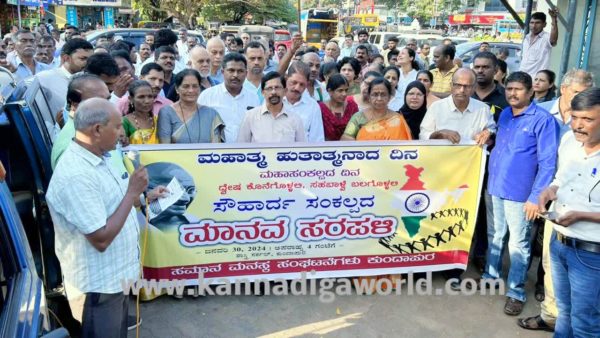 ಕುಂದಾಪುರ: ಮಹಾತ್ಮ ಗಾಂಧಿಯವರು ಹುತಾತ್ಮರಾದ ದಿನವಾದ ಜ.30 ರಂದು ಕರ್ನಾಟಕ ರಾಜ್ಯಾದ್ಯಂತ ಹಮ್ಮಿಕೊಂಡ ಕರ್ನಾಟಕ ಸೌಹಾರ್ದ ಪರಂಪರೆಯ ಮಹಾಸಂಕಲ್ಪ ದಿನದಂದು ಸಮಾನ ಮನಸ್ಕ ವಿವಿಧ ಸಂಘನೆಗಳ ಆಶ್ರಯದಲ್ಲಿ ಕುಂದಾಪುರ ಶಾಸ್ತ್ರೀ ಸರ್ಕಲ್ ಬಳಿ ಬ್ರಹತ್ ‘ಮಾನವ ಸರಪಳಿ’ ನಡೆಸಲಾಯಿತು.