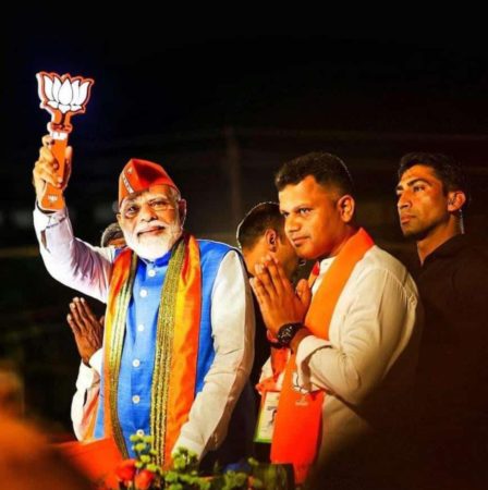 ಮೋದಿ ಮುಖವಾಡ, ಕೇಸರಿ ಭಾವುಟ ಹಿಡಿದು ನಿಂತ ಅಭಿಮಾನಿಗಳು, ಜಯ ಘೋಷ ಕೂಗಿ ಸಂಭ್ರಮಿಸಿದರು. ಅಭಿಮಾನಿಗಳು ಮೋದಿ ಅವರತ್ತ ಹೂವಿನ ಮಳೆಗರೆದು ಸ್ವಾಗತ ಕೋರಿದರು. ಪ್ರಧಾನಿ ಮೋದಿ ಅವರೊಂದಿಗೆ ಮಂಗಳೂರು ಲೋಕಸಭಾ ಕ್ಷೇತ್ರದ ಭಾಜಪಾ ಅಭ್ಯರ್ಥಿ ಬ್ರಿಜೇಶ್ ಚೌಟ, ಉಡುಪಿ-ಚಿಕ್ಕಮಗಳೂರು ಕ್ಷೇತ್ರದ ಅಭ್ಯರ್ಥಿ ಕೋಟ ಶ್ರೀನಿವಾಸ ಪೂಜಾರಿ ಉಪಸ್ಥಿತರಿದ್ದರು.