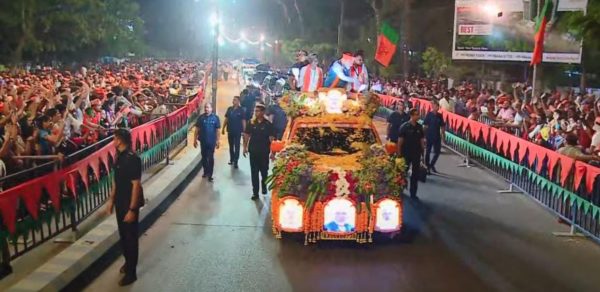 ನಾರಾಯಣಗುರು ವೃತ್ತದಿಂದ ತೆರೆದ ವಾಹನದಲ್ಲಿ ಆರಂಭವಾದ ರೋಡ್ ಶೋ ವೇಳೆ ರಸ್ತೆಯ ಇಕ್ಕೆಲಗಳಲ್ಲಿ ಕಿಕ್ಕಿರಿದು ನೆರೆದಿದ್ದ ಜನಸ್ತೋಮ, ಪ್ರಧಾನಿ ಕಂಡು ಜಯ ಘೋಷ ಮೊಳಗಿಸಿತು.
