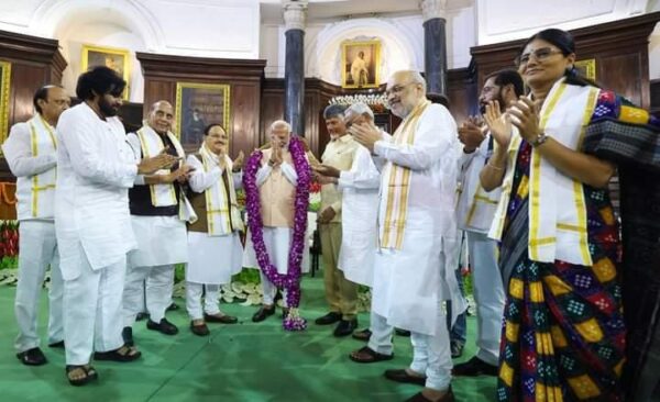 ಕೇಂದ್ರದಲ್ಲಿ ಎನ್‌ಡಿಎ ಸರ್ಕಾರ ರಚಿಸಲು ಹಕ್ಕು ಮಂಡಿಸುವ ಸಂದರ್ಭದಲ್ಲಿ ಹಂಗಾಮಿ ಪ್ರಧಾನಿ ಮೋದಿ ಬೆಂಬಲಿಗ ಸಂಸದರ ಪಟ್ಟಿಯನ್ನು ರಾಷ್ಟ್ರಪತಿ ದ್ರೌಪದಿ ಮುರ್ಮು ಅವರಿಗೆ ಸಲ್ಲಿಸಿದರು.