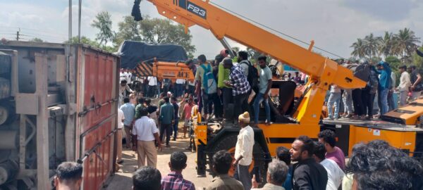 ವೇಗವಾಗಿ ಬಂದ ಲಾರಿಗಳು ಡಿಕ್ಕಿಯಾದ ಪರಿಣಾಮ ಅಪಘಾತ ಸಂಭವಿದೆ. ಎರಡು ಕಾರು, ಎರಡು ಲಾರಿ, ಸ್ಕೂಲ್ ಬಸ್, ಬೈಕ್ಗಳ ನಡುವೆ ಸರಣಿ ಅಪಘಾತ ಸಂಭವಿಸಿದೆ. ಈ ವೇಳೆ ಕಂಟೇನರ್ ಲಾರಿ ಕಾರಿನ ಮೇಲೆ ಬಿದ್ದ ಪರಿಣಾಮ ಕಾರಿನಲ್ಲಿದ್ದ ಅಷ್ಟೂ ಜನರು ಮೃತಪಟ್ಟಿದ್ದಾರೆ.