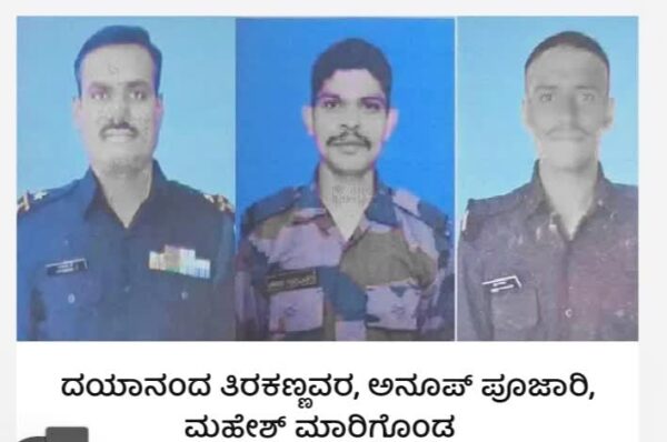 ಬೆಳಗಾವಿಯ ದಯಾನಂದ ತಿರಕಣ್ಣವರ (45), ಕುಂದಾಪುರ ಬಳಿಯ ಕೋಟೇಶ್ವರ ಬೀಜಾಡಿಯ ಅನೂಪ್ (31) ಬಾಗಲಕೋಟೆಯ ಮಹೇಶ್ ಮಾರಿಗೊಂಡ (25) ಮೃತ ಯೋಧರು. ಇನ್ನಿಬ್ಬರು ಮಹಾರಾಷ್ಟ್ರದವರು.