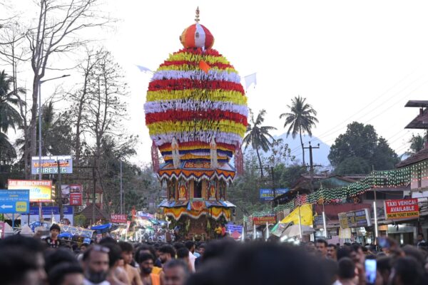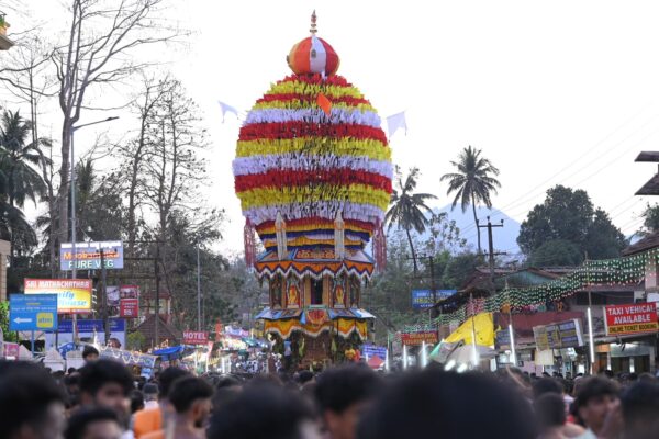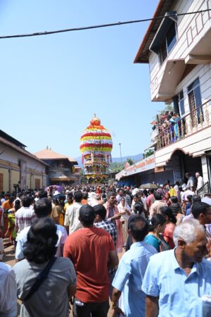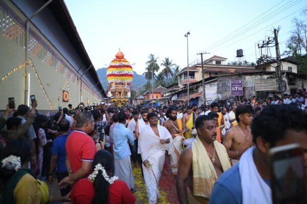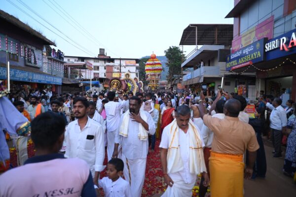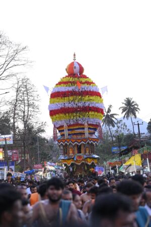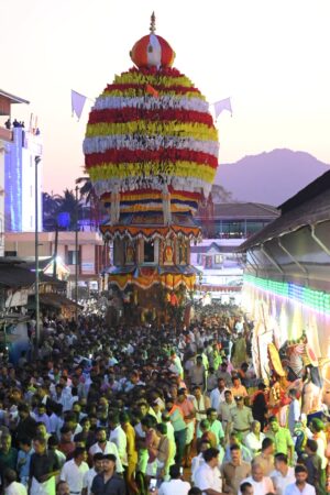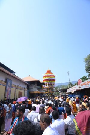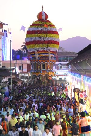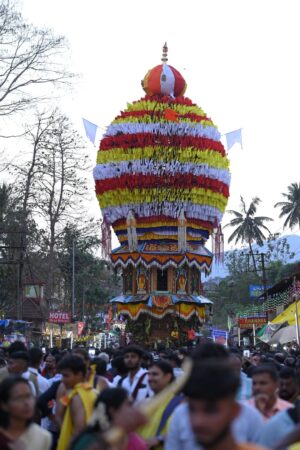 ಸಂಜೆ ನಡೆದ ವೈಭವದ ರಥೋತ್ಸವದಲ್ಲಿ ಚೆಂಡೆ ವಾದನ, ತಟ್ಟಿರಾಯ ಸೇರಿದಂತೆ ವಿವಿಧ ಸಾಂಸ್ಕೃತಿಕ ತಂಡಗಳು ಭಾಗವಹಿಸಿದ್ದವು. ದೇವಸ್ಥಾನದ ಹೊರ ಹಾಗೂ ಒಳಾವರಣವನ್ನು ಹೂವು ಹಾಗೂ ಹಣ್ಣುಗಳಿಂದ ವಿಶೇಷವಾಗಿ ಅಲಂಕರಿಸಲಾಗಿತ್ತು. ಭಾನುವಾರ ಓಕುಳಿ ಹಾಗೂ ಅವಭೃತ ಸ್ನಾನ, ಸೋಮವಾರ ಅಶ್ವರೋಹಣೋತ್ಸವ, ಧ್ವಜಾವರೋಹಣ ಮಹಾಪೂರ್ಣಾಹುತಿ, ಪೂರ್ಣಕುಂಭಾಭಿಷೇಕ ಹಾಗೂ ಅಂಕುರ ಪ್ರಸಾದ ವಿತರಣೆ ನಡೆಯಲಿದೆ.