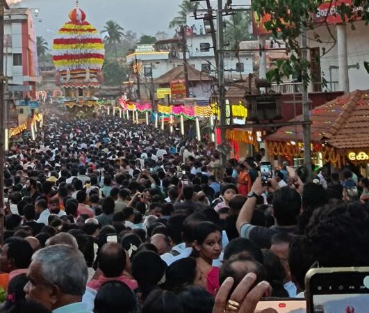 ಕುಂದಾಪುರ: ಪುರಾಣ ಹಾಗೂ ಇತಿಹಾಸ ಪ್ರಸಿದ್ದವಾದ ಕೊಲ್ಲೂರಿನ ಶ್ರೀ ಮೂಕಾಂಬಿಕಾ ದೇವಸ್ಥಾನದ ವೈಭವದ ಶ್ರೀ ಮನ್ಮಹಾರಥೋತ್ಸವ ಶನಿವಾರ ವೈಭವದಿಂದ ಸಂಪನ್ನಗೊಂಡಿದೆ. ಶ್ರೀ ದೇವಿಯ ವಿಜ್ರಂಭಣೆಯ ಉತ್ಸವಕ್ಕೆ ಆಸು-ಪಾಸಿನ ಗ್ರಾಮಗಳಿಂದ, ರಾಜ್ಯದ ವಿವಿಧ ಭಾಗಗಳಿಂದ ಹೊರ ರಾಜ್ಯದಿಂದ ಹಾಗೂ ವಿದೇಶದಿಂದ ಬಂದಿದ್ದ ದೊಡ್ಡ ಸಂಖ್ಯೆಯ ಭಕ್ತರು ಸಾಕ್ಷಿಯಾದರು.