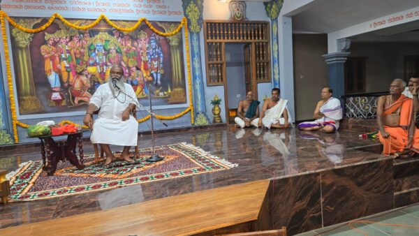 ಜಗತ್ತಿನಲ್ಲಿನ ಶ್ರೀರಾಮನ ಭಕ್ತರು ಬರೆದಿರುವ 165 ಕೋಟಿ ರಾಮ ನಾಮ ಜಪ ಬರೆದಿರುವ ಪುಸ್ತಕಗಳನ್ನು ಜೋಪಾನವಾಗಿ ಇಡಲು ಹೆಬ್ಬುಳ್ಳಿಯಲ್ಲಿ ಭವ್ಯ ಮಂದಿರ ಕಟ್ಟಿಸಲಾಗಿದೆ. ಭಗವಂತನ ಕಡೆಗೆ ಅಭಿಮುಖವಾಗಿಸುವ ಸಂಕೇತಗಳೇ ಭಗವತ್ ಮಂದಿರಗಳಾಗಿದೆ. ಚೈತನ್ಯಗಳನ್ನು ಬಿಂಬಗಳಲ್ಲಿ ತುಂಬಿ ಚೈತನ್ಯ ಜಾಗೃತಿಗೊಳಿಸುವುದೇ ನಿಜವಾದ ಪ್ರಾಣ ಪ್ರತಿಷ್ಠೆ. ಧರ್ಮ ಕಾರ್ಯ ನಡೆಸುವವರಿಗೆ ಸಮಸ್ಯೆ ಪರಿಹಾರ ಸರಳವಾಗಿರುತ್ತದೆ. ಸತ್ಸಂಗದಲ್ಲಿ ಭಗವಂತ ನಮಗೆ ಹತ್ತಿರವಾಗುತ್ತಾರೆ. ಭಕ್ತಿ ಮತ್ತು ಭಗವಂತ ಎನ್ನುವ ತತ್ವ ಶಾಶ್ವತವಾಗಿರುತ್ತದೆ. ಸ್ಮರಣೆಗಳು ಭಕ್ತಿಯನ್ನು ಉದ್ದೀಪನಗೊಳಿಸುತ್ತದೆ. ಉಪಾಸನೆ, ಅನುಷ್ಠಾನ ಹಾಗೂ ಭಗವಂತನೊಂದಿಗಿನ ಅನುಸಂಧಾನ ಭಕ್ತಿಯನ್ನು ನೆಲೆಗೊಳಿಸುತ್ತದೆ ಎಂದರು.