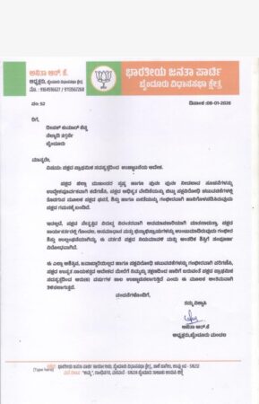 ಪತ್ರದಲ್ಲೇನಿದೆ?: ಪಕ್ಷದ ಜಿಲ್ಲಾ ಮುಖಂಡರ ಸ್ಪಷ್ಟ ಹಾಗೂ ಪುನಃ ಪುನಃ ನೀಡಲಾದ ಸೂಚನೆಗಳನ್ನು ಉದ್ದೇಶಪೂರ್ವಕವಾಗಿ ಕಡೆಗಣಿಸಿ, ಪಕ್ಷದ ಅಧಿಕೃತ ವೇದಿಕೆಯನ್ನು ಬಿಟ್ಟು ಪಕ್ಷವಿರೋಧಿ ಚಟುವಟಿಕೆಗಳಲ್ಲಿ ತೊಡಗುವ ಮೂಲಕ ಪಕ್ಷದ ಘನತೆ, ಶಿಸ್ತು ಹಾಗೂ ಏಕತೆಯನ್ನು ಗಂಭೀರವಾಗಿ ಹಾನಿಗೊಳಪಡಿಸಿರುವುದು ಪಕ್ಷದ ಗಮನಕ್ಕೆ ಬಂದಿದೆ. ಇದಲ್ಲದೆ, ಪಕ್ಷದ ನೇತೃತ್ವದ ವಿರುದ್ಧ ನಿರಂತರವಾಗಿ ಅವಮಾನಕಾರಿಯಾಗಿ ಮಾತನಾಡುತ್ತಾ, ಪಕ್ಷದ ಕಾರ್ಯಕರ್ತರಲ್ಲಿ ಗೊಂದಲ, ಅಸಮಾಧಾನ ಮತ್ತು ಭಿನ್ನಾಭಿಪ್ರಾಯಗಳನ್ನು ಉಂಟುಮಾಡಿರುವುದು ಗಂಭೀರ ಶಿಸ್ತು ಉಲ್ಲಂಘನೆಯಾಗಿದ್ದು, ಈ ವರ್ತನೆ ಪಕ್ಷದ ನಿಯಮಾವಳಿ ಮತ್ತು ಆಂತರಿಕ ಶಿಸ್ತಿಗೆ ಸಂಪೂರ್ಣ ವಿರೋಧವಾಗಿದೆ. ಈ ಎಲ್ಲಾ ಅಶಿಸ್ತಿನ, ಜವಾಬ್ದಾರಿಯಿಲ್ಲದ ಹಾಗೂ ಪಕ್ಷವಿರೋಧಿ ಚಟುವಟಿಕೆಗಳನ್ನು ಗಂಭೀರವಾಗಿ ಪರಿಗಣಿಸಿ, ಪಕ್ಷದ ಉನ್ನತ ನಾಯಕತ್ವದ ಆದೇಶದ ಮೇರೆಗೆ ನಿಮ್ಮನ್ನು ತಕ್ಷಣದಿಂದ ಜಾರಿಗೆ ಬರುವಂತೆ ಪಕ್ಷದ ಪ್ರಾಥಮಿಕ ಸದಸ್ಯತ್ವದಿಂದ 6 ವರ್ಷಗಳ ಕಾಲ ಉಚ್ಚಾಟಿಸಲಾಗುತ್ತಿದೆ ಎಂದು ಈ ಮೂಲಕ ಅಂತಿಮವಾಗಿ ತಿಳಿಸಲಾಗುತ್ತದೆ’ ಎಂದು ಪತ್ರದಲ್ಲಿ ಉಲ್ಲೇಖಿಸಲಾಗಿದೆ.